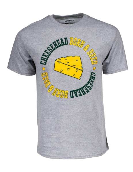 Cheesehead Men's Born & Bred Tee Sizes: Mens Small Mens Medium Mens Large Mens XL $25.00 90% Cotton 10% Polyester AVAILABLE FOR IN STORE PURCHASE ONLY