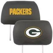 14" x 10" Black Headrest Covers (pair) with centered embroidered team logo on front.