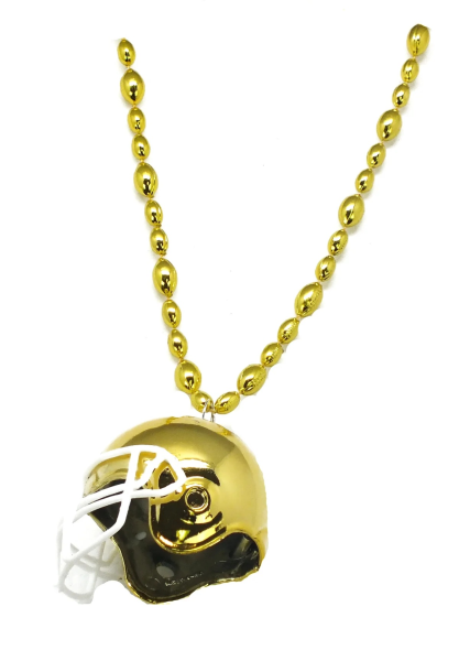 This is a strand of 33" beads which feature a gold football helmet on a gold strand of football beads.