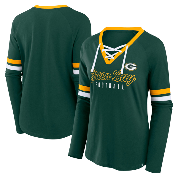 The lace-up neckline adds a touch of edgy style, perfect for showing off your Green Bay Packers pride with a unique flair.