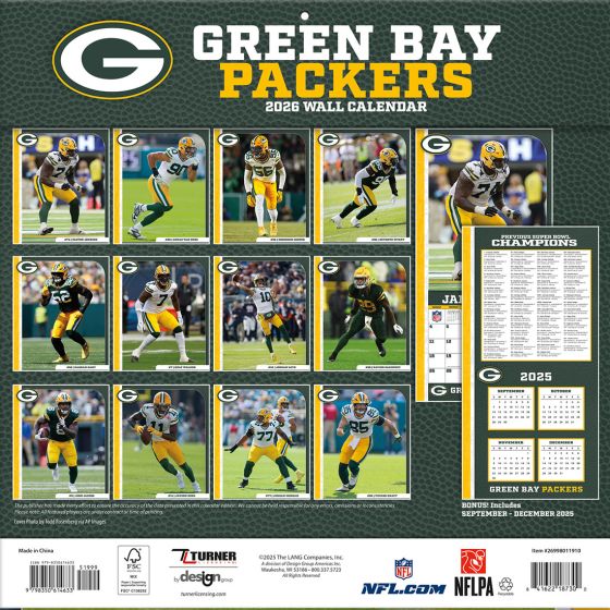 Packers 2026 Wall Calendar - 12x12