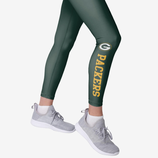 Whether you're at the gym putting in work or at the stadium watching the pros do the work, these Green Bay Packers Women's Solid Wordmark Leggings will make sure you look AND feel great.
