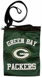 The pouch is made from NFL jersey material and features screen printed team graphics, a zipper closure and a 42" length cross body nylon strap.