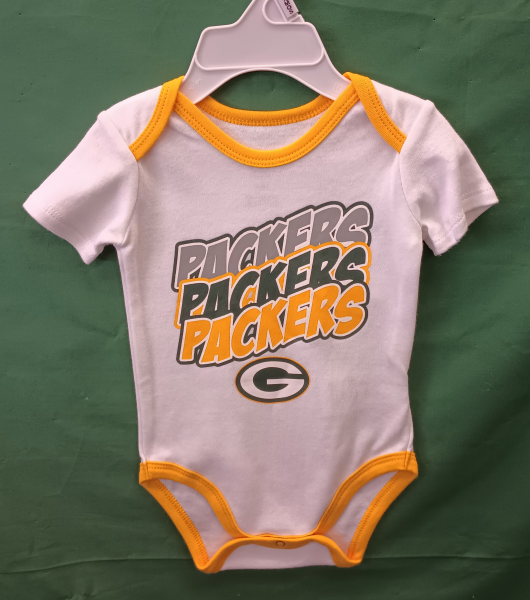 Packers Infant Triple Packer Onesie - White Sizes: 0/3 Month 6/9 Month 12 Month 18 Month 24 Month $12.00 Quantity: 100% Cotton