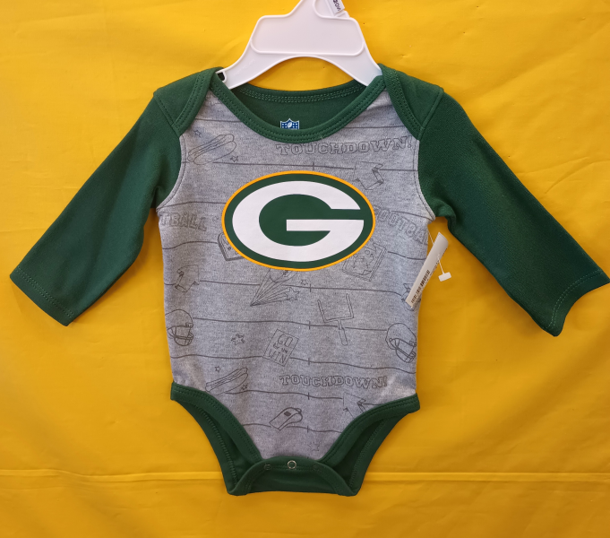 Packers Infant Born To Win Long Sleeve Onesie Sizes: 0/3 Month 3/6 Month 18 Month 24 Month $15.00 Quantity: 100% Cotton