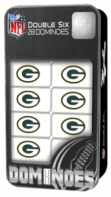 This Double-Sixes Green Bay Packers Dominoes Set comes in a collectible tin box and includes 28 resin dominoes with a team logo printed on the back of each one. Dominoes Instructions are also included.