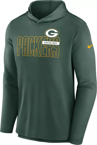 Gear up for the next Green Bay Packers game by sporting this pullover hoodie. It features Dri-FIT technology that helps keep you cool and dry so game day can be as comfortable as ever. The iconic team graphics on the front display your unwavering fandom of the Green Bay Packers.