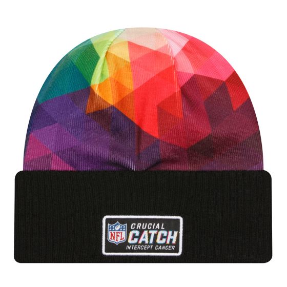 In the spirit of the various cancer ribbon colors, the cuffed knit hat features bold multi-colored prism print with tonal black and white embroidered team logo.